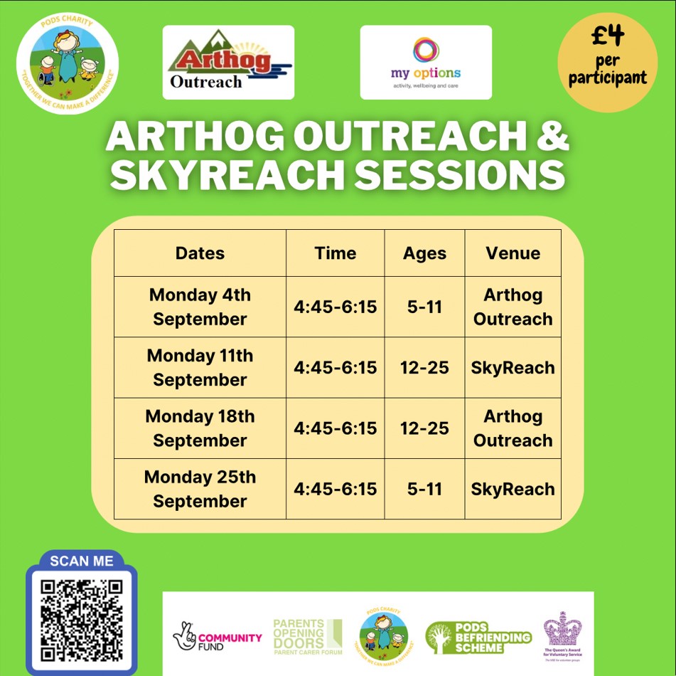 Join PODS this September for sessions at Arthog Outreach (Wellington) and SkyReach (Town Park)! Sessions are every Monday at 4:45-6:15 and open for primary aged children and 12-25 years, alternating between the two venues and age groups.