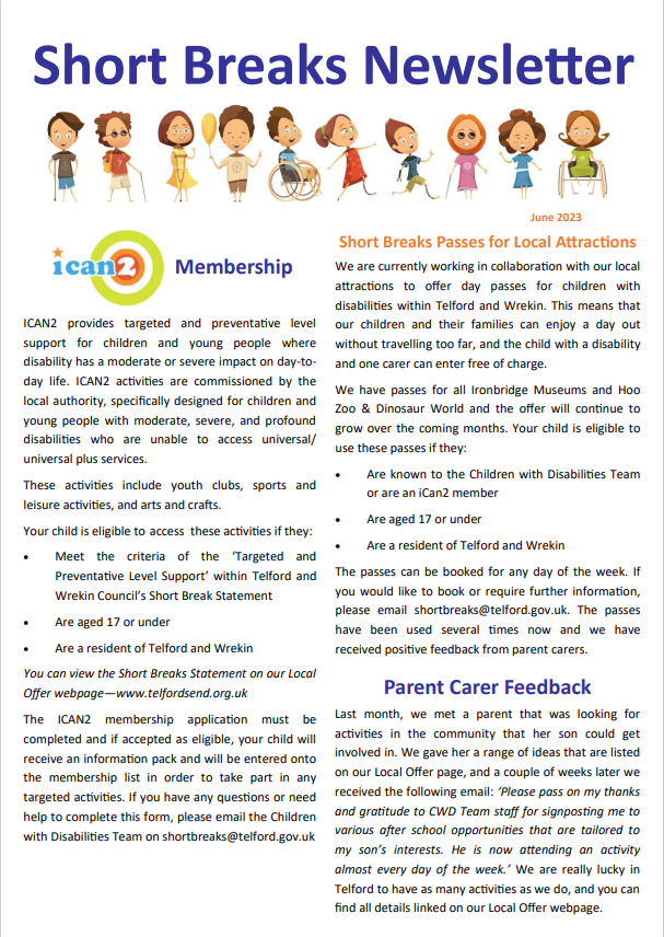 To read the newsletter in full, please click here: Short Breaks Newsletter – June
